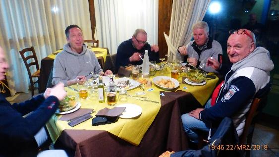 Gisi bereitete uns anschließend an Bord eine warme Mahlzeit zu, welche wir mit Grappa abschlossen. Die beiden Heizlüfter kämpften derweil gegen die nassen Klamotten an!