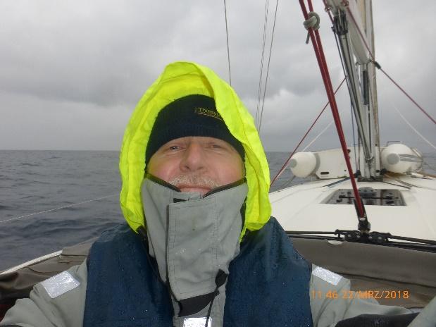 Draußen haben wir – wie sollte es anders sein – mal wieder Starkwind, der kaum einmal das Herausholen des Großsegels ermöglicht. Wir laufen erneut überwiegend unter stark gereffter Fock, nur ab und an holt der Wind mal Luft. Wir üben uns im Einreffen und Ausreffen und stellen wieder einmal fest, dass ein Rollgroß nicht unser Ding ist, da es mühsam ist, dieses bei Seegang und starkem Wind faltenfrei in den Mast zu kriegen! Immer wieder gibt es Falten, die ein komplettes Einrollen letztlich verhindern.
